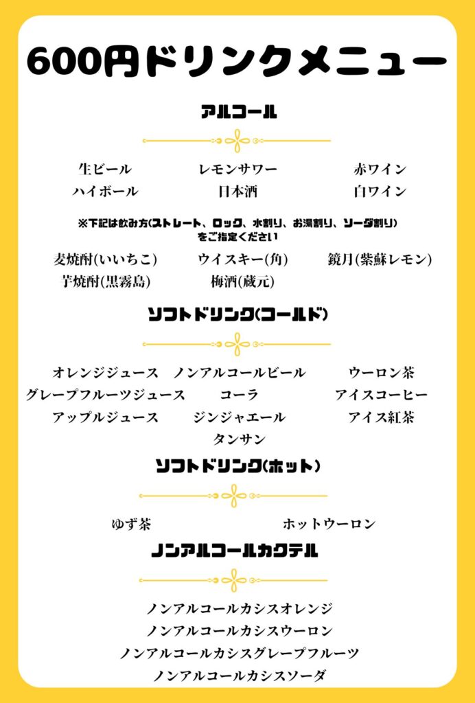 下記をドリンクチケットで頼む場合は差額をお支払いください。